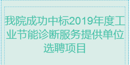 2019年8月29日,在工信部節(jié)能與綜合利用司組織的《2019年度工業(yè)節(jié)能診斷服務(wù)提供單位選聘項(xiàng)目》招標(biāo)中,經(jīng)評(píng)標(biāo)委員會(huì)認(rèn)真評(píng)定,我院以良好的信譽(yù)、豐富的業(yè)績經(jīng)驗(yàn)、優(yōu)秀的投標(biāo)方案贏得肯定,順利中標(biāo)。