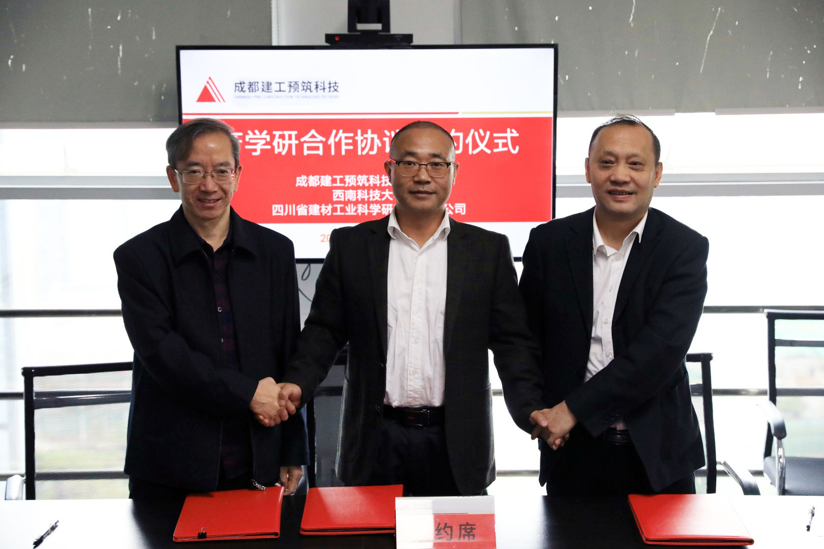 4月13日,省建材院有限公司董事長(zhǎng)王強(qiáng)一行到成都建工預(yù)筑科技有限公司座談交流,并與成都建工預(yù)筑科技有限公司、西南科技大學(xué)簽署了產(chǎn)學(xué)研三方合作協(xié)議。